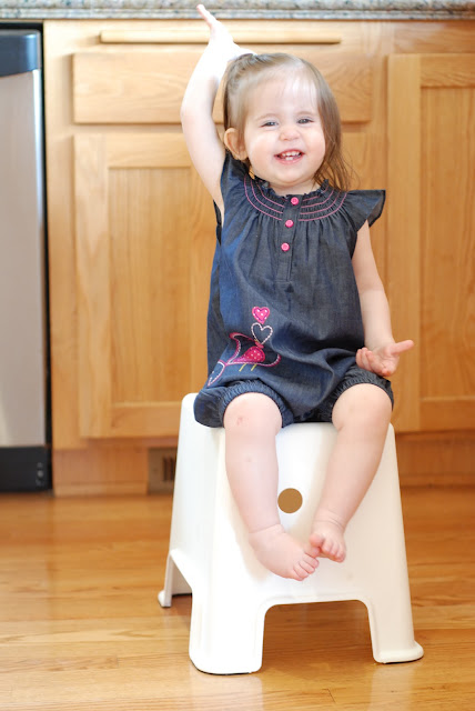 eve was ready for a nap the other day and i sat her on the bench to distract her while i made her a bottle.
